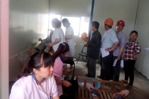 为方便民工体检,十七冶医院的医护人员携医疗设备在花山二期现场的医护室内为民工开展了血压、心电图等常规项目的检查。本次活动共分为四个环节:首先,逐一登记参加体检的民工个人信息;第二,在登记领取体检单后,进行身体检查;第三,体检结束的人员在印有“强化红线意识,促进安全生产”的安全生产月主题横幅上签名;最后,为每一位参检人员拍照,建立个人职业健康档案,同时发放健康知识宣传册及爱心雨伞。在医护人员的辛勤工作及公司、项目部人员的共同努力下,下午四时,本次爱心体检暨安全月主题签名活动顺利落下帷幕。