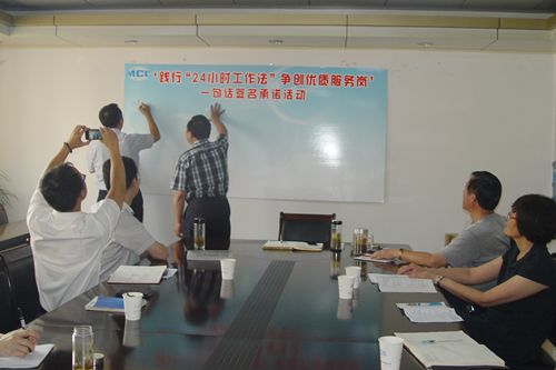 为更好地学习宣贯中国十七冶集团“24小时工作法”,新型建筑制品与物流公司机关党支部开展了践行“24小时工作法”、争创优质服务岗一句话签名承诺活动。机关党支部全体党员积极参加到此项活动中。