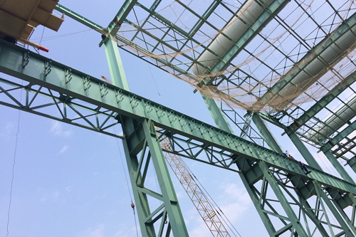 该工程北区综合楼电缆夹层桥架为600*100500*100400*100三种规格的托盘式桥架,共计2028m,采用顶天立地式工字钢立柱安装,每根立柱3.5m、共计350根。冶金工程技术公司克服空间狭小、天气炎热等不利影响,在桥架进场就立即组织人员展开安装工作。钢水罐维修跨滑线总长652m,滑线支架共计108付,安装高度为18m,由于该工作为高空作业,施工之前冶金工程技术公司针对施工现场实际情况,积极组织相关人员编制施工技术方案及专项安全方案,并提前对该区域员工进行安全技术交底。由于准备充分,滑触线及支架的安装工作目前在安全、有序、高效的进行中。