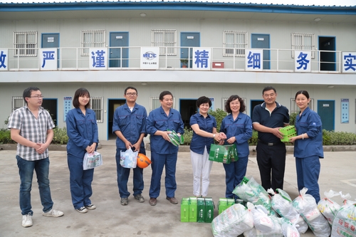 61623日,公司领导带队为各项目送去绿豆、白糖、茶叶、毛巾、风油精、十滴水等防暑降温用品和药品,为一线员工送去清凉和健康。