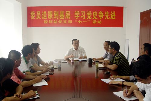 “七一”前夕,新型建筑制品与物流公司送党课到基层。626日下午,新型建筑制品与物流公司经理、党委委员孟祥春到混凝土搅拌站现场上党课。搅拌站党员、生产骨干及管理人员各方面代表近40人参加了学习。