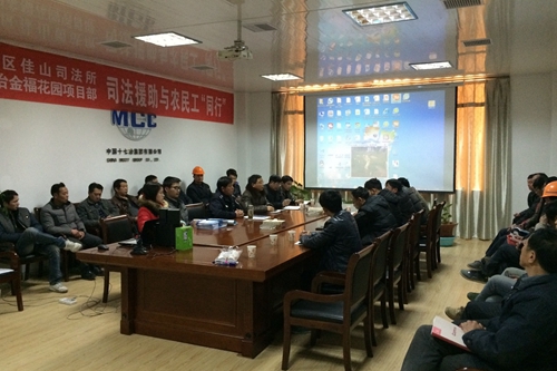 为帮助农民工维护合法权益,表达合理诉求,引导其合法维权,12月24日下午,所属中冶置业(安徽)公司的中冶金福置业有限公司邀请雨山区佳山司法所负责人就农民工维权相关法律知识进行培训,金福花园项目部管理人员、作业处负责人、各工种班组长等40多人参加。