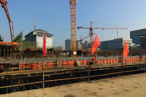 该工程自20149月底开工以来,项目部积极践行“24小时工作法”,精心组织,集约资源,创造条件加快工程建设。截止开盘当日,累计完成6万平方米的地下室基坑支护及深井降水、1071根扩大头蘘式抗浮锚杆的施工,并完成了4万平方米的地下室结构施工,以较快的建设速度满足了一期工程销售条件。