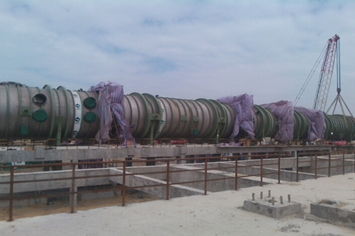 该蒸发器总长78.4米,743吨,共分7效6段,每段蒸发器下仅有一个支座,每段蒸发器的吊装只有在筒体找正好并焊接固定后,吊车才能摘钩。冶金公司积极落实“24小时工作法”,以“一天也不耽误、一天也不懈怠”工作作风,不惧艰难,努力拼搏,积极主动与设计、业主、监理等相关单位沟通联系,并通过各种渠道收集相关资料,解决了蒸发器双相不锈钢的焊接技术难题,克服了蒸发器体积大、吨位重的吊装困难,顺利完成1#蒸发器的全部吊装工作。