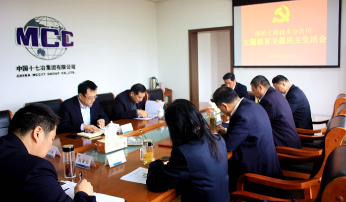 12月15日下午,中国十七冶集团路桥工程技术分公司党委召开“不忘初心、牢记使命”主题教育专题民主生活会,公司全体领导班子成员参加会议。中国十七冶集团副总经理陈阳,纪委副书记、纪检部部长施松林到会指导。