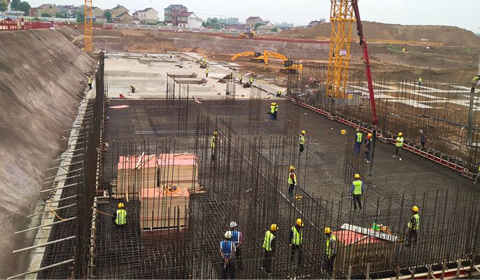 为保证第一次浇筑顺利完成,项目部提前准备,反复检验现场隐蔽工程,安排专人跟进现场质量,保证现场施工与施工图纸同步衔接。该项目工期紧,施工难度大,技术质量要求高。施工过程中,项目部提前进行施工技术交底,合理安排工期,严格把控物资材料进场。技术质量把控上,严格按照工程规范要求施工,对每道工序严格执行三检制度。项目部始终发扬“一天也不耽误,一天也不懈怠”的中冶精神,加强工程进度管理,以安全质量第一的原则,确保向博望人民递交出一份满意的答卷。