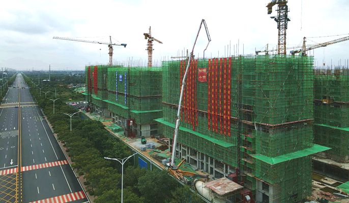 该项目位于潍坊市寒亭区富亭街与幸福路交汇处东南角,北侧紧邻寒亭区政府,总占地面积7.5万平方米,总建筑面积约22.9万平方米,包括13栋住宅楼、一栋政务审批大厅和一栋幼儿园。本次封顶的为幸福路南侧的两栋住宅楼,地上11层,地下2层,主体为剪力墙结构。