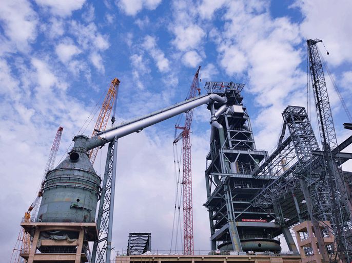 河钢乐亭钢铁3000立方米高炉下降管吊装
