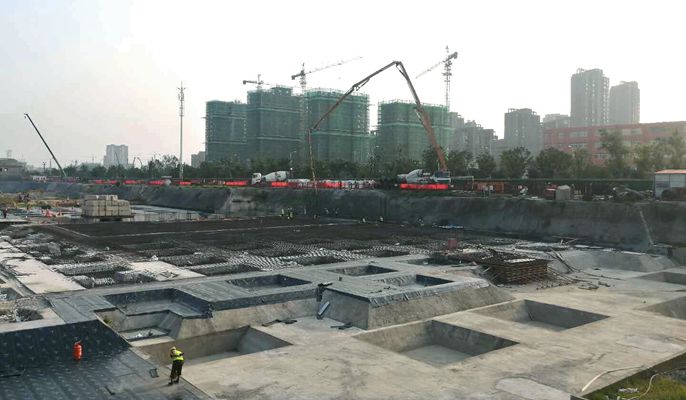 灵璧金色名郡项目位于宿州市灵璧县建设北路以东,钟灵大道以北,潼河路以南,凌山路以西。用地面积约为11.08万平方米,总建筑面积约为30万平方米,其中地上建筑面积约22.6万平方米,地下建筑面积6.74万平方米。该项目是集商贸、住宅、幼儿园为一体的综合性小区,具体建设内容包括住宅建筑、配套商业用房、社区服务用房、养老用房、物业用房、室外景观、道路管网等配套基础设施。在首块筏板浇筑施工过程中,项目管理人员全程跟班作业,全方位、全过程进行严格把控和指导。此次浇筑混凝土约700立方米,共配备20辆罐车,历时12个小时。