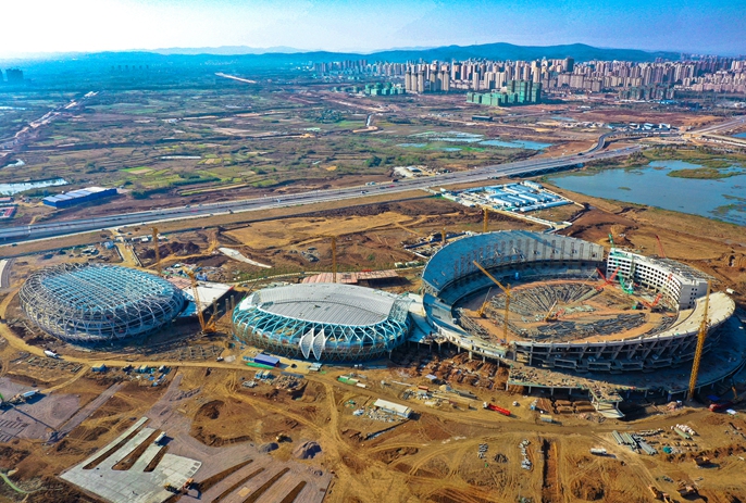 安徽滁州奥体中心游泳馆、体育馆钢结构安装完成