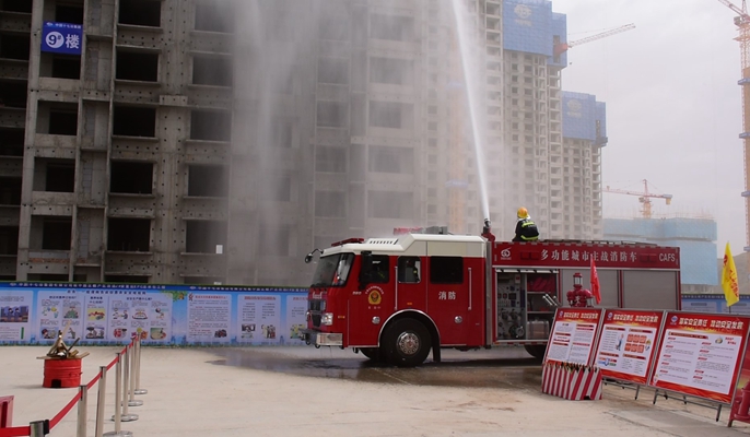 活动现场模拟了火灾、高处坠落事故场景。随着警报响起,消防演练开始。事发现场,安全员第一时间向应急救援领导小组总指挥报告,随即拨打119、120紧急救援电话寻求帮助。楼层人员迅速手捂口鼻,弯腰撤离到安全区域,各应急小组在总指挥的指令下紧张有序抵达事故现场。警戒保卫组迅速疏散围观人群,拉挂警戒带,防止事态进一步扩大。后勤保障小组迅速将应急救援物资送至现场抢险人员手中,协同消防队成功扑灭火灾。消防演练结束后,项目部进行了高坠事故应急演练,各应急小组团结配合,医疗救援组对“伤员”进行医疗检查包扎,及时将伤员抬至安全处等待救护车到来并送上救护车辆。本次演练针对现场施工特点,内容涉及事故的发现上报、预案启动、现场抢险、医疗救援、安全疏散等,涵盖了事故应急救援处置的各个环节。