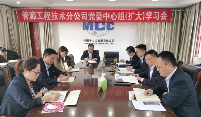 10月29日,中国十七冶集团管廊工程技术分公司开展党委中心组(扩大)学习会,公司领导班子成员、安全总监、副总工程师、机关各部门负责人参加学习。