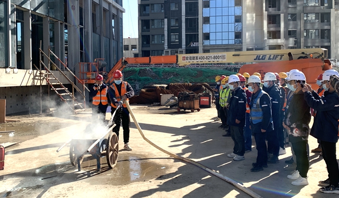 在中冶集团西北区域总部项目,项目部成立了专题领导小组,精心筹备,周密安排,详细分工。活动中,指定安全员在选定点位点燃可燃材料,模拟出现火情及吸入烟气晕倒等情况,其他安全管理人员发现火情,立刻响应,迅速上报,并同时进行扑救准备。在专题领导小组判断火情、下达指令后,各保障组、救援组成员开始进行救援工作。采取一系列应急措施后,现场火情完全被扑灭,各参演小组对人员进行清点,分别报告专题领导小组,确认无人员受伤后,宣布演练结束。随后,项目安全总监还组织大家集中学习了“识别和使用常用消防器材”等理论知识。
