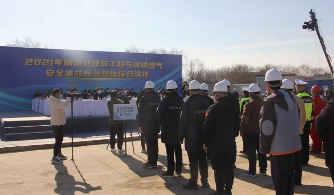 为加强生产安全事故应急预案管理,增强安全意识,提高突发险情的应急处置能力,12月31日,2021年响水县建筑工程与城镇燃气安全事故应急救援综合演练在十七冶南京分公司响水县人民医院新院区、妇幼保健院项目举行。响水县常委、常务副县长李益,响水县政府分管领导薛风林、县各职能局局长,南京分公司副经理洪文胜、项目部有关管理人员及劳务单位代表参加演练。