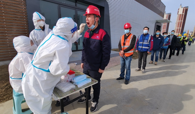 3月14日下午,在十七冶的统一部署安排下,分公司组织各部门在马人员开展全员核酸检测,全体员工自觉排队,依次有序登记采集信息并进行咽拭子样本采样。在天津经适房项目,项目部根据区疫情防控指挥部及区住建委要求,紧急召开疫情防控部署会议,动员疫情防控小组成员紧急排查现场驻地人员来源地及近日行踪。项目部第一时间联系附近核酸检测机构组织全员核酸检测,截至3月14日,总计完成检测人数435人次。