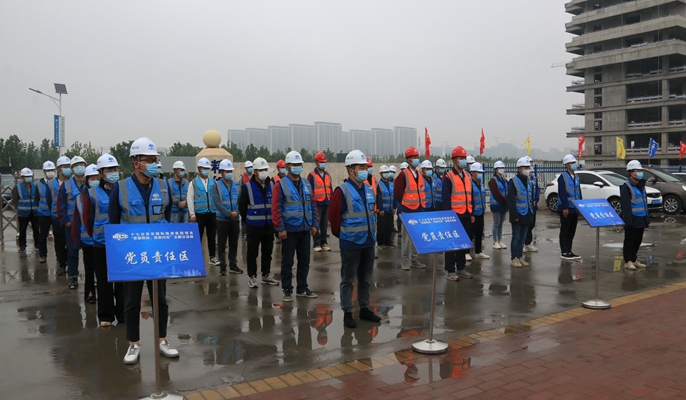 为助推项目“党建+”引领高质量发展,高效落实“项目管理提升年”和“安全生产提升年”各项举措,在区域建设实践中强化十七冶党建品牌,5月9日上午,中国十七冶集团陕西分公司西安交通大学第一附属医院国际陆港医院项目开展了“党旗飘扬、党徽闪光”主题党日活动,项目全体管理人员及各劳务协作单位代表近50人参加活动。