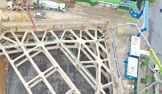 此次混凝土浇筑的底板面积约1100平米,硂浇筑量达到980立方米,为了确保此次混凝土一次性浇筑成功,项目部提前向施工人员作了详细的技术交底和安全交底。浇筑时,质检人员全程现场指挥浇筑,确保质量成优。自开工以来,项目部面对时间紧、任务重、疫情严峻、施工难度高等诸多不利因素的影响,科学制定施工计划,加大设备投入,合理调配人员、机械,不断提高施工效率,细化分解工程节点,各部门全程跟踪、盯控,全力推进工程进度。负三层基础底板混凝土的浇筑为后续施工创造了条件,为保质保量完成各项施工进度节点奠定了坚实的基础。
