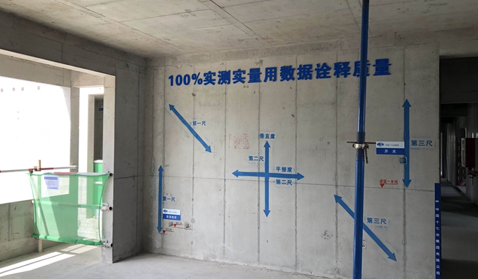 项目部在前期铝模板施工策划中对铝模板安装进行了设计深化,深化内容包括对门窗企口的设置,在免抹灰混凝土墙体与砌筑墙交接处留置抹灰压槽,厨房卫生间反坎、窗下墙体、构造柱一次成型,下挂梁、电梯井墙体一次优化到位等方面。在铝模板拆除后,混凝土实体质量良好,观感质量佳,里实外光,构件实测实量合格接近100%,室内开间、井深、净高能得到有效保证,而采用铝模板施工的剪力墙表面无需抹灰,降本增效,较大的节省了EPC项目施工成本。