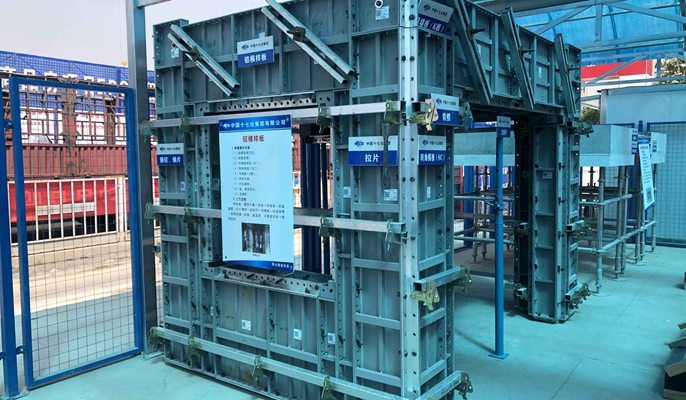 此次采用的铝合金模板,具有重量轻、刚度大、精度高、稳定性好、承载力高、混凝土成型质量好、周转次数多、拆装方便、施工安全文明等优点,其中最大的优势就是无需设置卸料平台,自带传料口,极大程度上避免了安全隐患。支撑杆及后拆头确保混凝土强度满足要求后再拆除,与全钢爬架的配合使用完美的体现出材料周转所带来的便捷及安全、质量、文明施工保证。