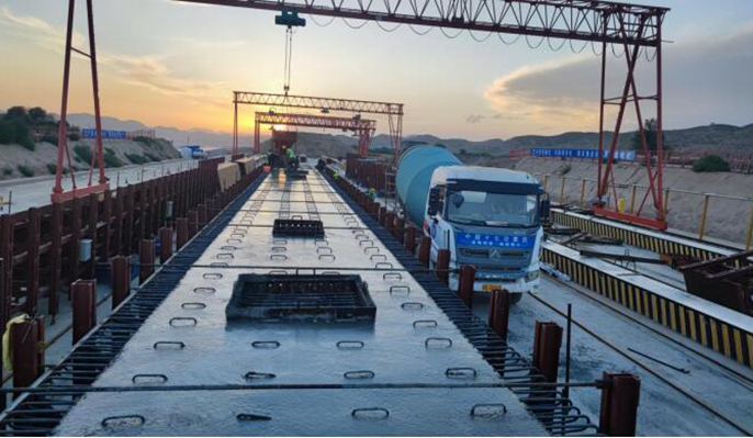 二分部预制梁场设在榆中县金崖镇马莲沟,钢筋加工场、制梁区、存梁区整体相连,共计承担618片30米预制箱梁生产任务。为确保工程品质,梁场建设伊始,项目团队便马不停蹄地开始高起点策划,优化工期、劳务资源配置、梁场布置及技术方案。秉承着标准化、智慧化梁场的建设理念,采用智能移动台座系统、智能液压模板系统、智能蒸汽养护系统、智能张拉系统、腹板纵向钢筋预张拉调直等新技术、新工艺,提升了箱梁生产的品质与进度。
