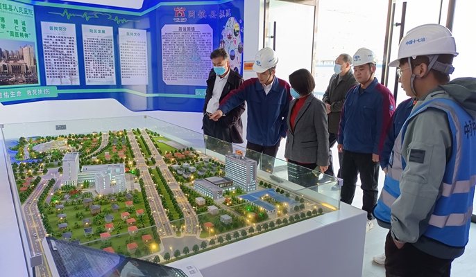 11月16日,蚌埠市固镇县副县长王艳一行到中国十七冶集团管廊工程技术分公司承建的固镇县人民医院项目调研指导工作,固镇县卫生健康委员会党委书记、主任单明等参加调研。