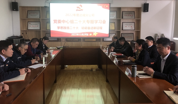 11月28日上午,中国十七冶集团达成分公司召开党委中心组(扩大)学习会,专题学习党的二十大精神。分公司领导班子成员、经理助理、副三总师和各支部书记参加学习。