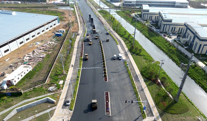 二季度以来,项目团队乘势一季度攻坚提效成果,积极与业主、监理沟通,科学编制施工方案,精心组织施工部署,加大人机资源投入,抢抓晴好天气,开启昼夜攻坚模式,全力推进施工进度,持续掀起大干热潮。同时,通过领导带班检查、质量技术交底、安全教育培训等多措并举确保安全可控、质量达标。截止目前,奥克斯大道、程桥南路、红桥路西延、工业干道、长基物流进场道路现有作业面沥青、绿化、照明、人行道、雨污水工程已完成,红桥路沥青摊铺完成80%。