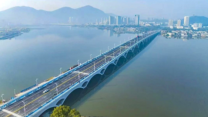 作为黄石重点民生工程,磁湖绿色廊道西起桂林南路与苏州路交叉口东侧,东至沿湖路与磁湖通道交叉口西侧,线路总长约1.5千米,主要建设长约0.85千米的明月桥,集生态步道、景观桥梁等功能于一体,对满足城市交通出行需求、带动环磁湖文旅发展、提升城市价值品质等方面具有重要作用。