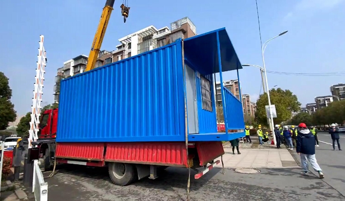 在当涂县出现多例疫情病例后,当地政府发出支援建设集装箱请求,公司第一时间响应号召,紧急抽调当涂区域项目技术骨干,调配相应物资与建材,迅速安排人员前往目标区域,无条件援建防疫用房。从3月20日至22日,经过3天的连轴转工作,马鞍山高速南、当涂凌云社区、行陈社区、西大社区等县城其他社区共28个防疫管控检查隔离集装箱顺利吊装完工,同时照明安装到位,各项设施准备到位,为守在防控一线志愿者们撑起温暖避风港。