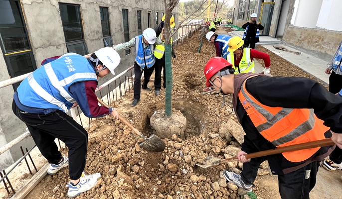 12日下午,新陆新居安置房项目以党建带动团建,组织项目全体党员、团员青年开展了“赓续发扬雷锋精神 护绿兴绿青年践行”主题植树活动。广大党员、团员青年在项目绿化区域分工协作,平整土地、清理余土,挖坑、植苗、浇水,栽得认真,干得卖力,整个活动现场都是一片热火朝天的劳动景象。大家一边植树,一边交流树木品种、生长周期、植物特性等情况,充分享受着劳动带来的乐趣和喜悦。
